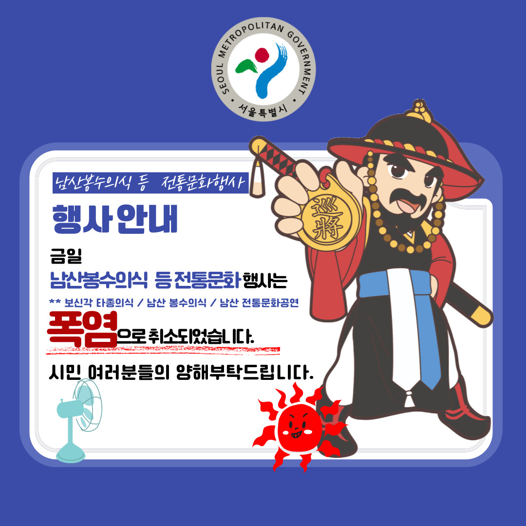 ±ÝÀÏ ÀüÅ빮Ȱø¿¬(15:00~15:40/»ç¹°³îÀÌ,¹«¿¹24±â) Àº Æø¿°À¸·Î Ãë¼ÒµÇ¾ú½À´Ï´Ù./ ¾çÇØ¹Ù¶ø´Ï´Ù.